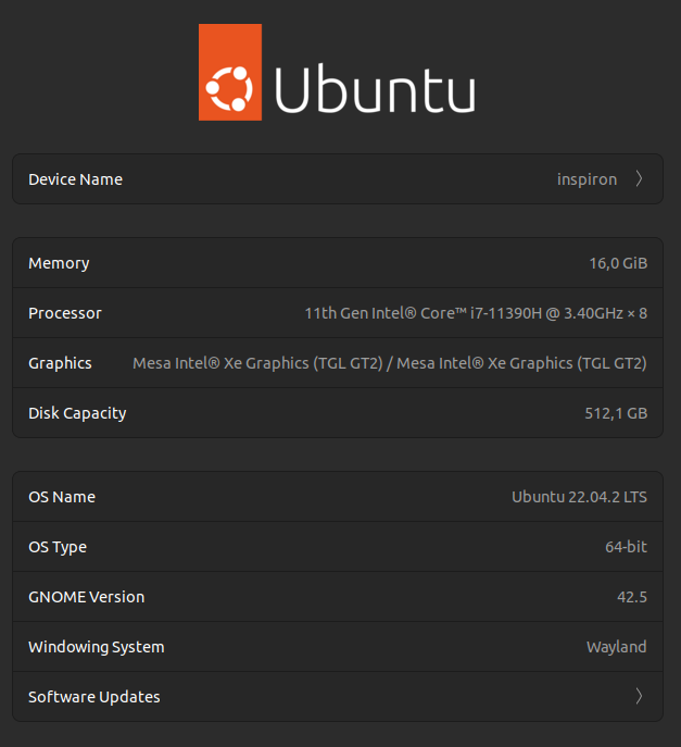 $ sudo lshw -c display *-display description: VGA compatible controller product: TigerLake-LP GT2 [Iris Xe Graphics] vendor: Intel Corporation physical id: 2 bus info: pci@0000:00:02.0 logical name: /dev/fb0 version: 03 width: 64 bits clock: 33MHz capabilities: pciexpress msi pm vga_controller bus_master cap_list rom fb configuration: depth=32 driver=i915 latency=0 mode=1920x1080 resolution=1920,1080 visual=truecolor xres=1920 yres=1080 resources: iomemory:600-5ff iomemory:400-3ff irq:184 memory:6044000000-6044ffffff memory:4000000000-400fffffff ioport:4000(size=64) memory:c0000-dffff memory:4010000000-4016ffffff memory:4020000000-40ffffffff *-display description: 3D controller product: TU117M [GeForce MX450] vendor: NVIDIA Corporation physical id: 0 bus info: pci@0000:01:00.0 version: a1 width: 64 bits clock: 33MHz capabilities: pm msi pciexpress cap_list rom configuration: driver=nouveau latency=0 resources: irq:185 memory:8e000000-8effffff memory:6000000000-600fffffff memory:6010000000-6011ffffff ioport:3000(size=128)