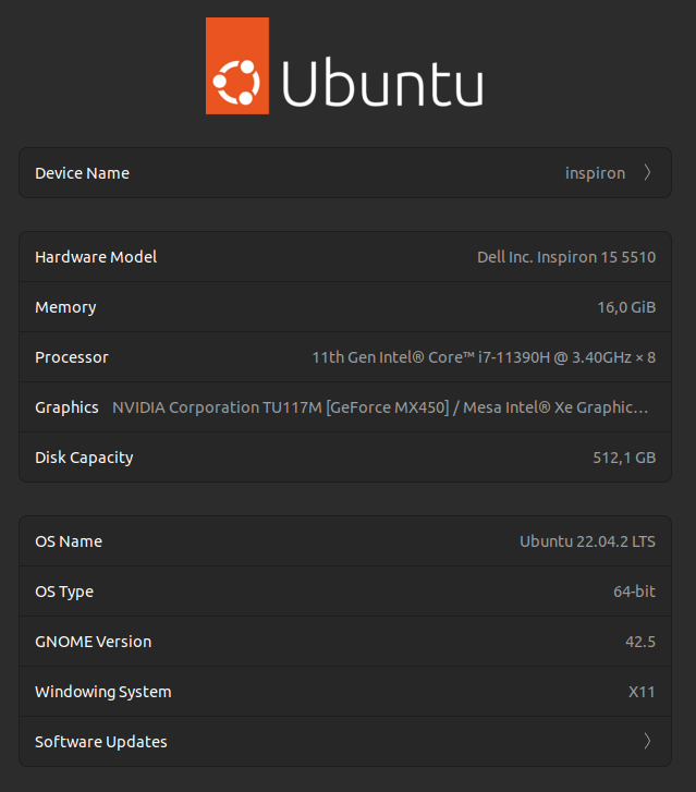 $ ubuntu-drivers devices == /sys/devices/pci0000:00/0000:00:06.0/0000:01:00.0 == modalias : pci:v000010DEd00001F97sv00001028sd00000B24bc03sc02i00 vendor : NVIDIA Corporation model : TU117M [GeForce MX450] driver : nvidia-driver-470 - distro non-free driver : nvidia-driver-525-open - distro non-free recommended driver : nvidia-driver-515 - distro non-free driver : nvidia-driver-515-server - distro non-free driver : nvidia-driver-470-server - distro non-free driver : nvidia-driver-510 - distro non-free driver : nvidia-driver-515-open - distro non-free driver : nvidia-driver-450-server - distro non-free driver : nvidia-driver-525 - distro non-free driver : nvidia-driver-525-server - distro non-free driver : xserver-xorg-video-nouveau - distro free builtin